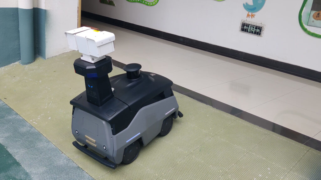 當暮色降臨,孩子們離校后,ANBOT-Y的“夜間模式”自動開啟。它配備紅外夜視攝像頭,在低照度環境下仍能清晰捕捉畫面。機器人會逐層檢查教室、走廊、活動室等區域,逐一確認門窗是否關閉、消防設施是否完好、設備是否安全,同時通過紅外探測實時監測樓內異常人形移動與溫度變化。一旦發現疑似火情、漏水或非法闖入等異常,立即發出警報并上傳現場畫面。